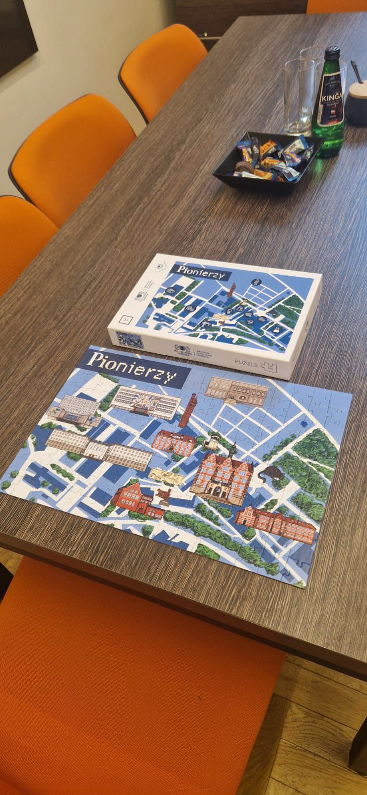Part of the project was creating a puzzle illustrating the campus; the image on the box lacked the illustrations of buildings taking part in the games, making it a clue that needed to be completed.